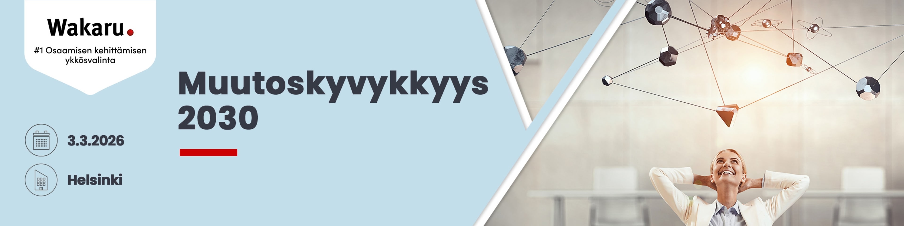 Muutoskyvykkyys 2030 on intensiivinen yhden päivän koulutus- ja verkostoitumistapahtuma, joka auttaa organisaatioita muuntamaan pitkän aikavälin strategiansa todelliseksi kilpailueduksi nopeasti muuttuvassa maailmassa.
