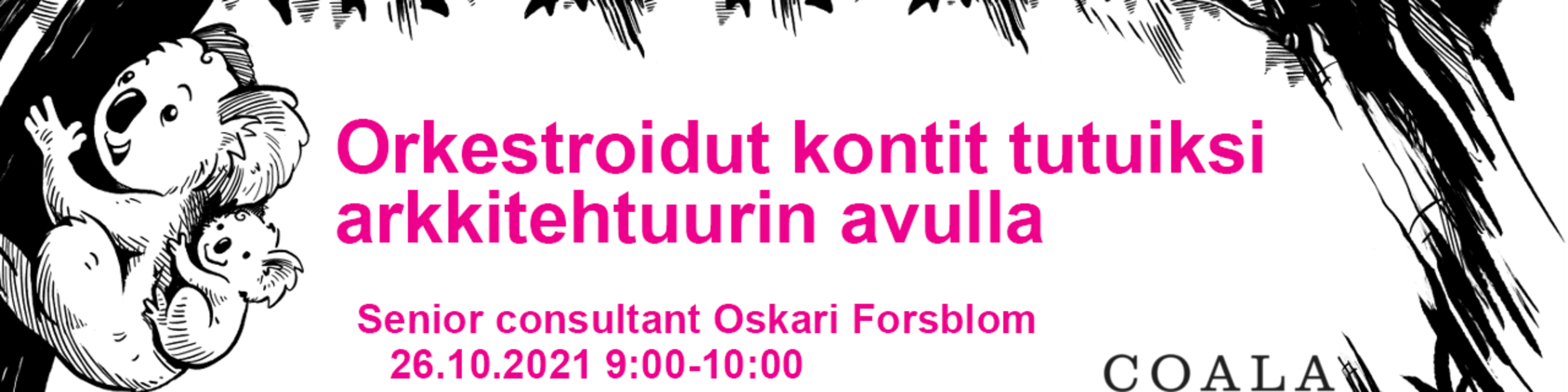 9.00-10:00 Orkestroidut kontit tutuiksi arkkitehtuurin avulla. Puhuja: Oskari Forsblom, Senior Consultant (Coala)