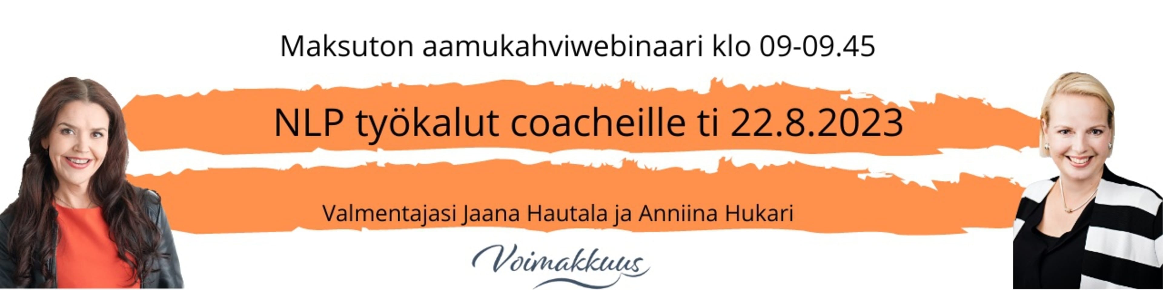 Webinaarin loppuun kuulet 31.10.2023 alkavat 2,5 päivän kestoinen NLP työkalut coachingissa- koulutuksesta.