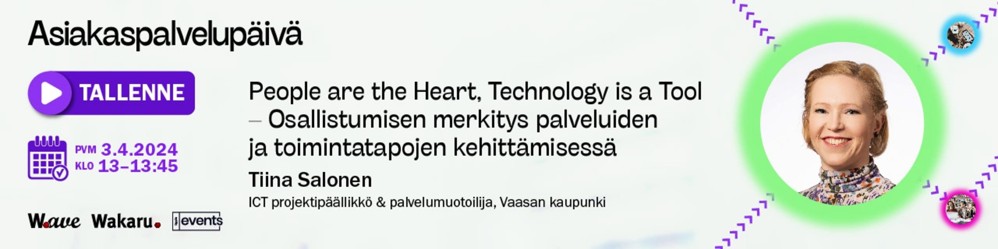 Mikä teki palvelusta Suomen parhaan? Miten huomioidaan erilaiset asiakkaat, ja saadaan henkilöstö mukaan kehittämään toimintaa? Ajatusta "People are the Heart, Technology is a Tool” pidän tärkeänä ohjenuorana tekemisessäni. Miksi asiakaskokemus on arvokasta?