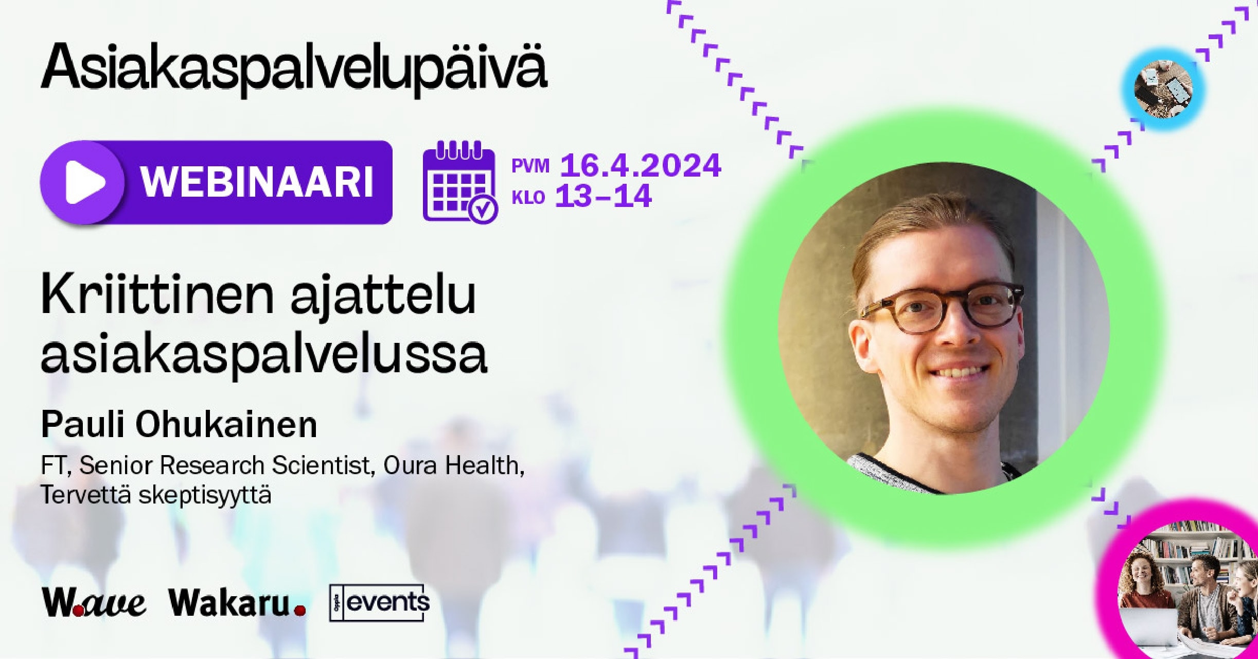 Kriittinen ajattelu on alati monimutkaistuvassa maailmassa yhä tärkeämpi kansalaistaito. Se sopii myös erinomaiseksi työkaluksi työelämän haasteisiin. Tässä webinaarissa tutustutaan ihmisen järkeilyn luontaisiin toimintaperiaatteisiin ja siihen, miten kriittinen ajattelu eroaa siitä. Johdannon jälkeen siirrytään asiakaspalvelun maailmaan; miten ihmisen ajattelun luontaiset vinoumat ja puutteet ilmenevät arkisissa vuorovaikutustilanteissa ja miten niitä voidaan ratkoa kriittisen ajattelun keinoin. Webinaari tarjoaa aiheeseen pintaraapaisun, ja keinoja sekä tiedonlähteitä omatoimiseen jatkoperehtymiseen.