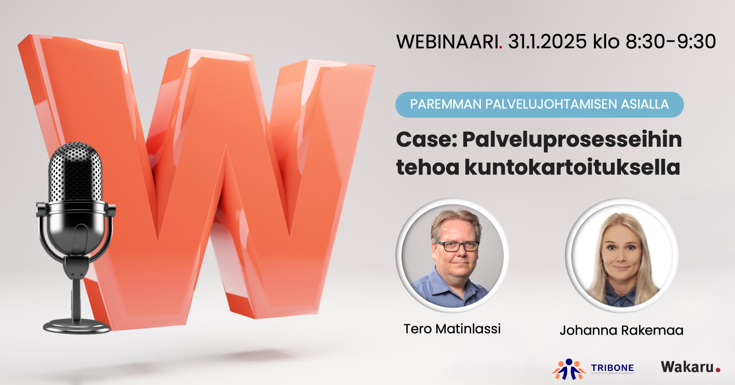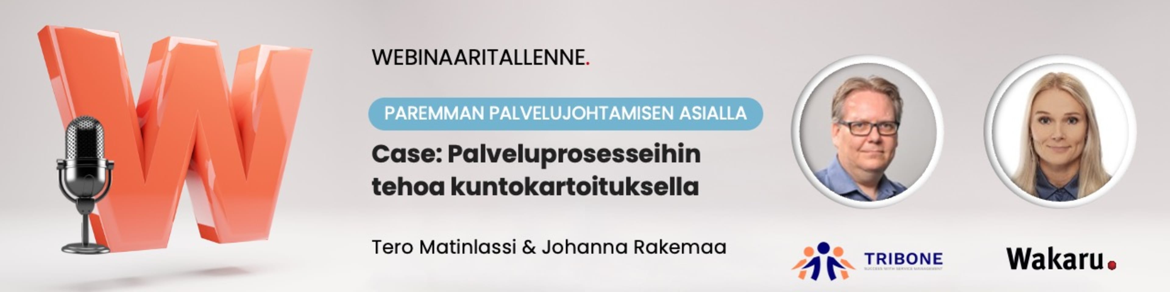 Syvennymme webinaarissa casen kautta kuntokartoitukseen ja siihen, mitä tukea se tarjoaa prosessien kehittämiseen ja ylläpitämiseen. Toteutamme Wakarulla kartoituksia yhdessä kumppanimme Tribonen kanssa. Tutustu kuntokartoitukseen täällä!