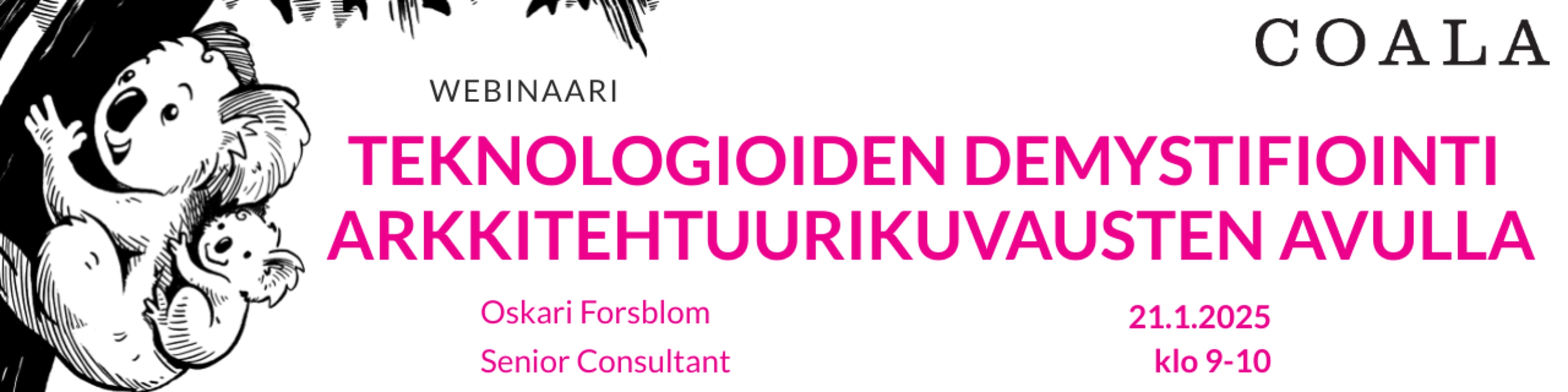 9.00-10:00 Teknologioiden demystifiointi arkkitehtuurikuvausten avulla. Puhuja: Oskari Forsblom, Senior Consultant (Coala)