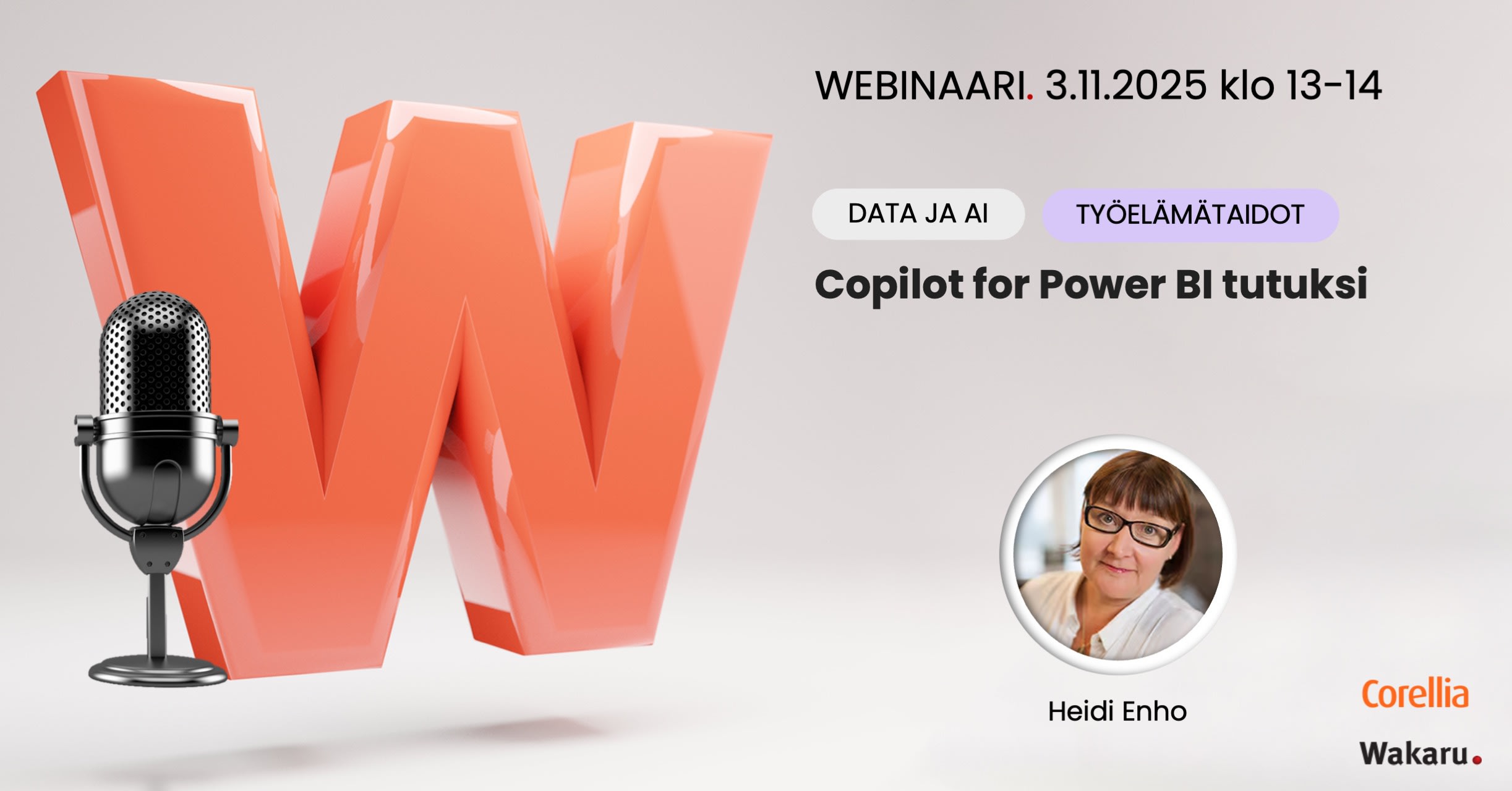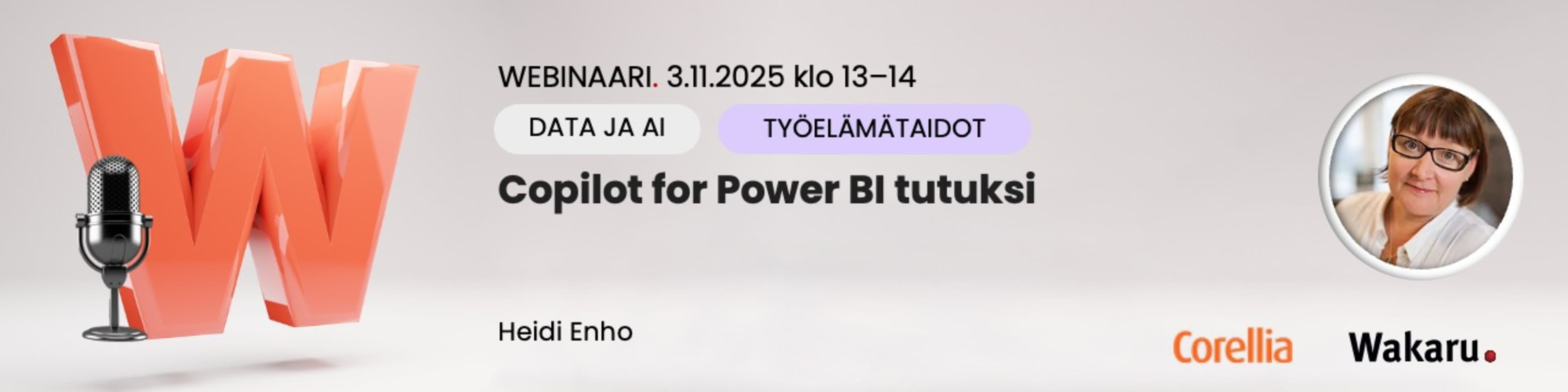 Webinaari on suunnattu Power BI -raporttien laatijoille ja muille dataa hyödyntäville asiantuntijoille, jotka haluavat ymmärtää, miten Copilot voi tukea heidän Power BI -työskentelyään.