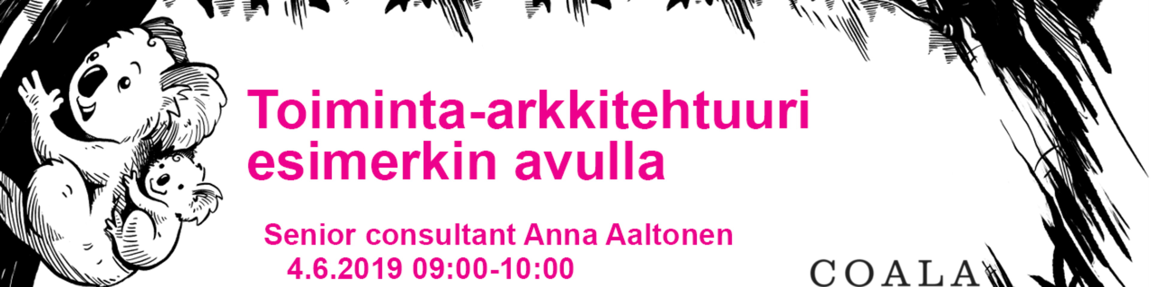 9.00-9.45 Toiminta-arkkitehtuuri esimerkin avulla Puhuja: Anna Aaltonen, Senior Consultant (Coala)