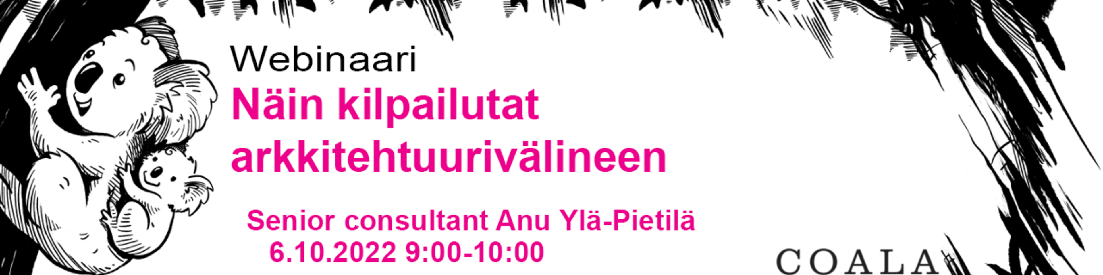 9.00-9.45 Näin kilpailutat arkkitehtuurivälineen. Puhuja: Anu Ylä-Pietilä, FM, Senior Consultant (Coala)