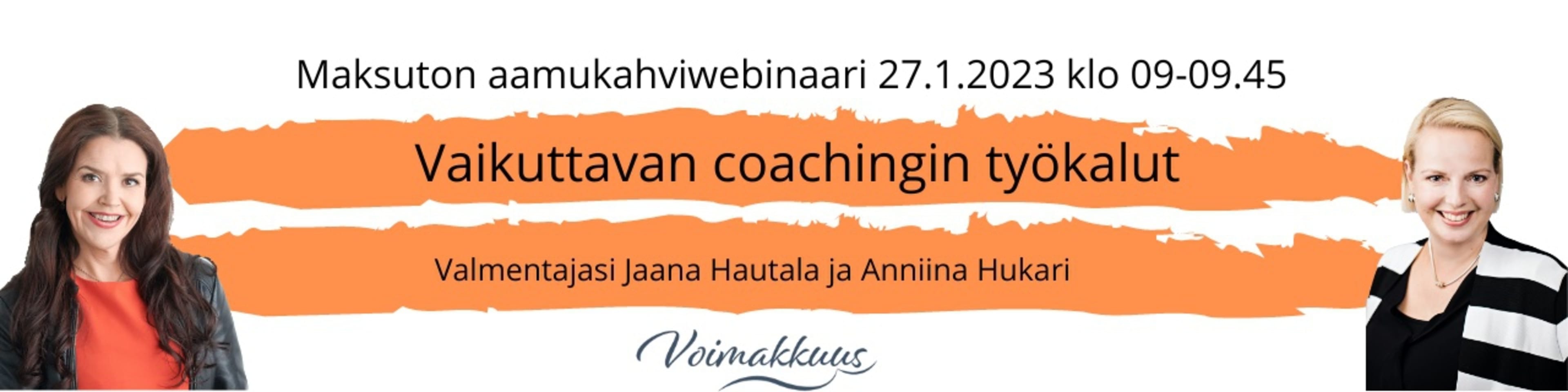 Webinaarin loppuun kuulet 22.3.2023 alkavat 3 päivän kestoinen Vaikuttavan coachingin työkalut ja menetelmät- koulutuksesta.