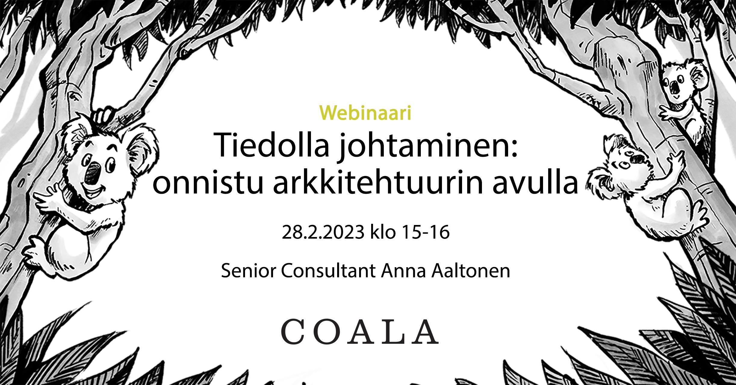 15.00-16:00 Tiedolla johtaminen: onnistu arkkitehtuurin avulla. Puhuja: Anna Aaltonen, Senior Consultant (Coala)