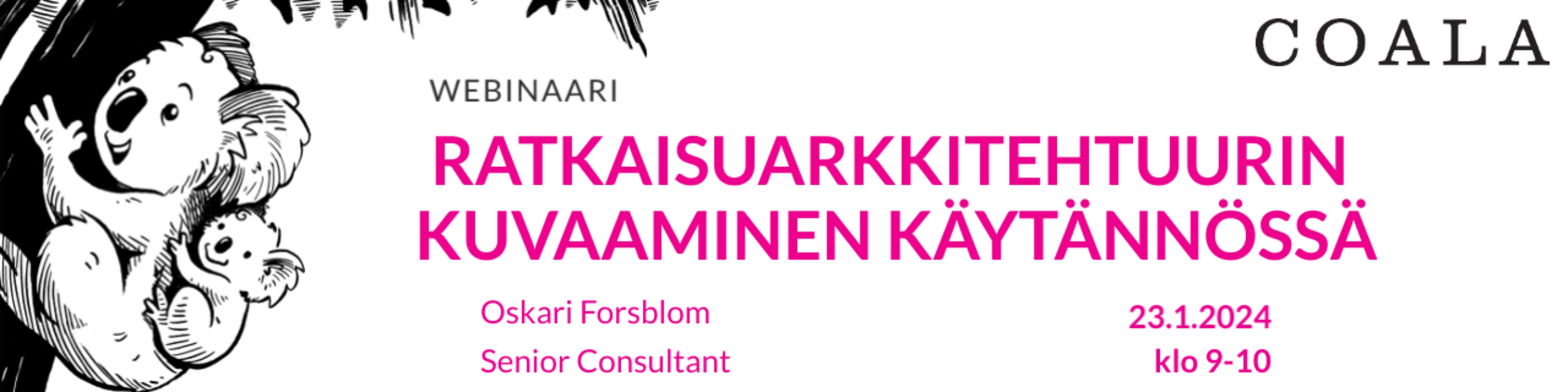 9.00-10:00 Ratkaisuarkkitehtuurin kuvaaminen käytännössä. Puhuja: Oskari Forsblom, Senior Consultant (Coala)