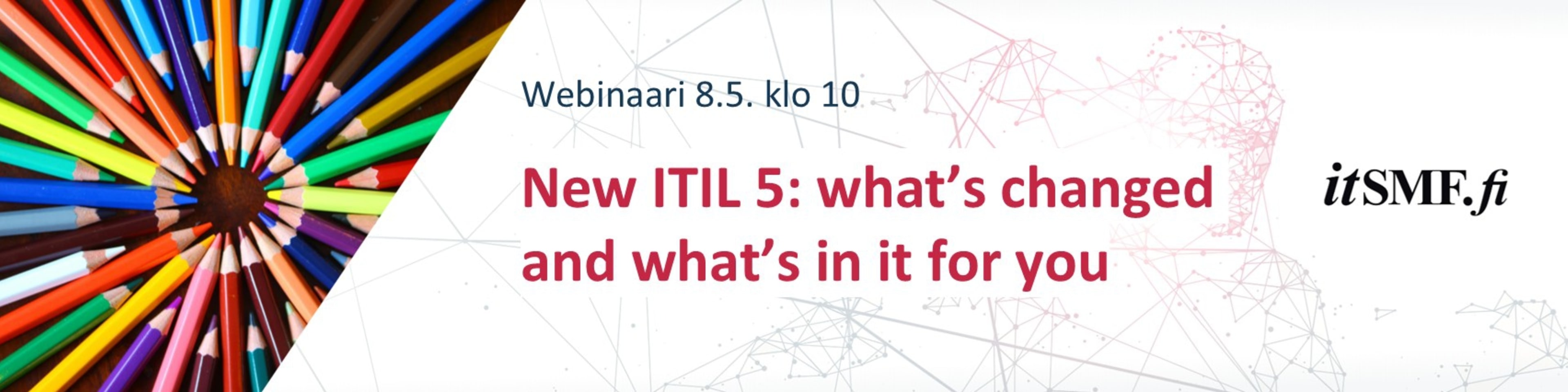 Webinaarin järjestää palvelujohtamisen yhdistys ItSMF Finland. Yhdistyksen tavoitteena on yhdistää ihmisiä ja organisaatioita, jakaa tietoa ja tehdä tutkimustyötä palvelujohtamisen alueella. Tule mukaan toimintaan liittymällä jäseneksi! TUTUSTU MEIHIN JA LIITY MUKAAN