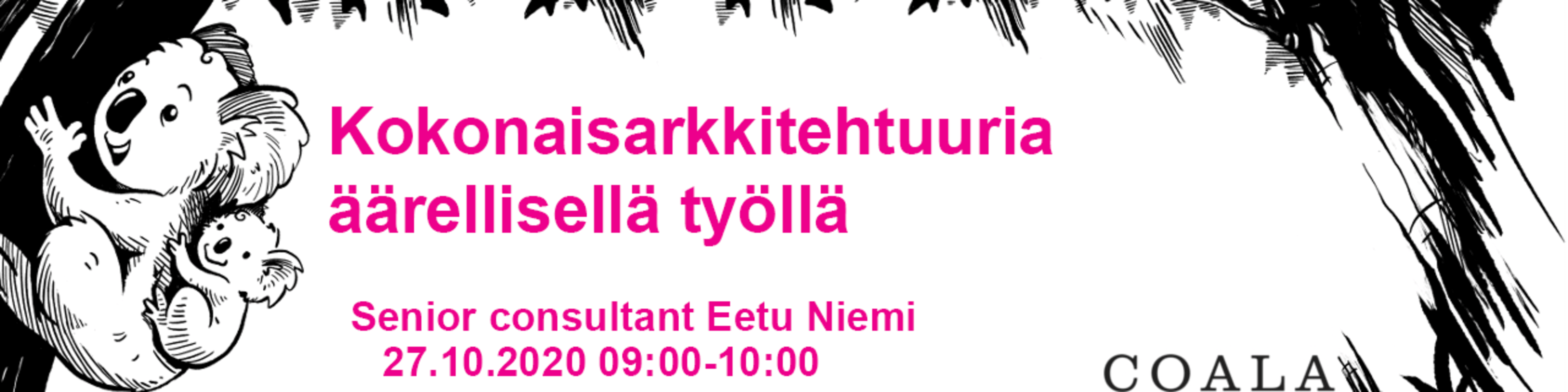 9.00-9.45 Kokonaisarkkitehtuuria äärellisellä työllä. Puhuja: Eetu Niemi, FT, Senior Consultant (Coala)