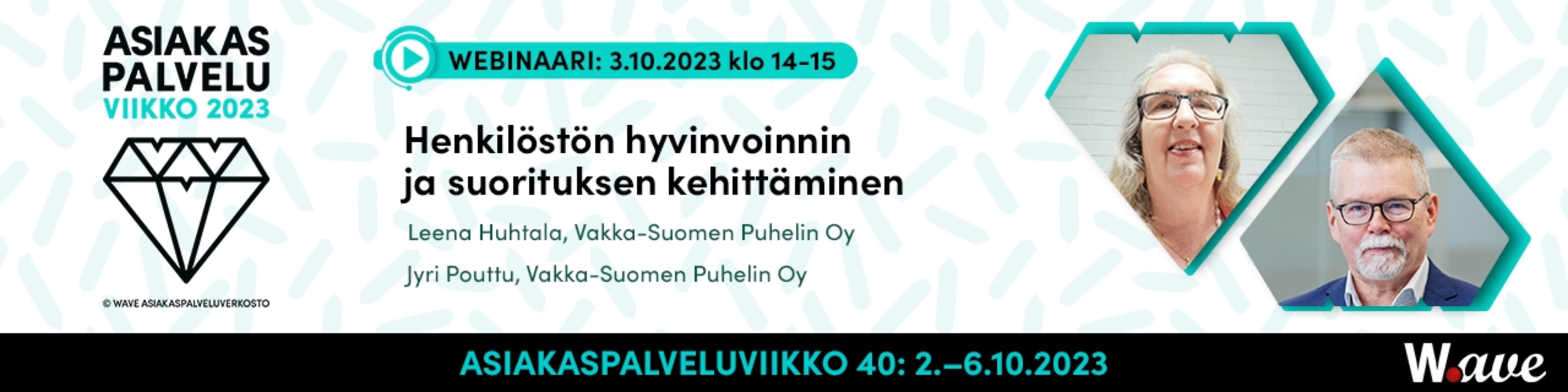 Tämä webinaari on maksuton ja osa Asiakaspalveluviikon ohjelmaa. Wave järjestää vuosittain Asiakaspalveluviikon, joka nostaa asiakastyön arvostusta ja motivoi alalla toimivia. Samalla se tarjoaa oivan paikan viestiä ja näkyä positiivisesti. Tutustu Asiakaspalveluviikkoon!
