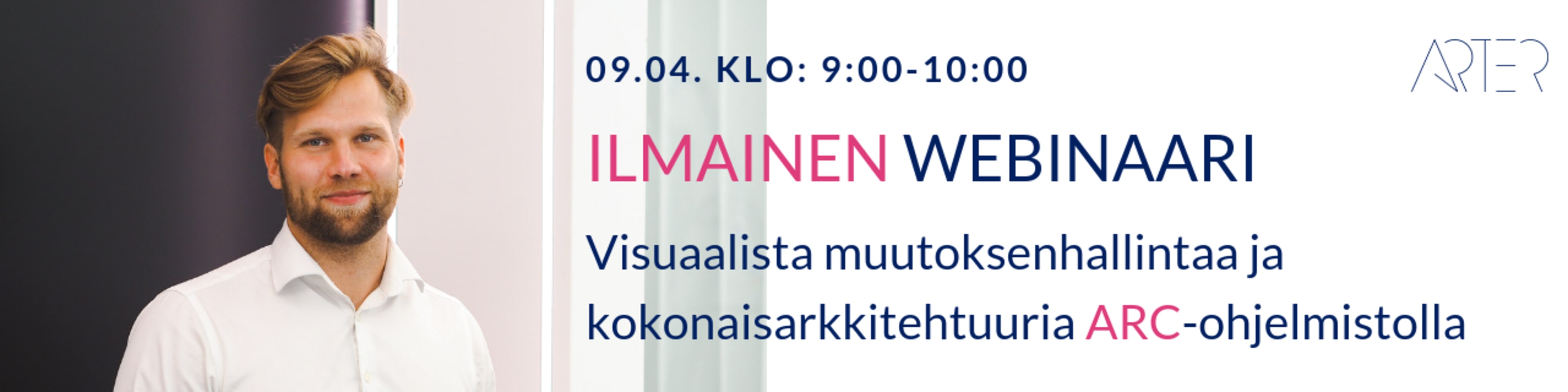 Tässä webinaarissa käymme läpi mitä on kokonaisarkkitehtuuri, ja miten Arterin ARC-työkalu auttaa organisaatioita hallitsemaan kokonaisuutta.