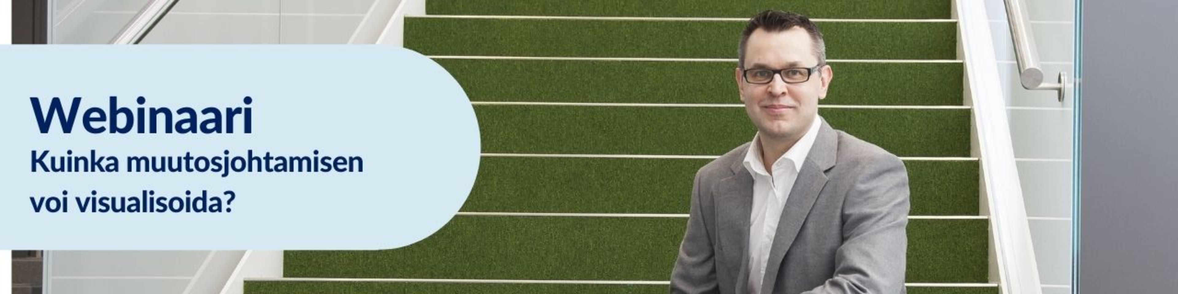Webinaarissa Jari Saali kertoo ja näyttää, kuinka visualisoinnin avulla voidaan parantaa muutosjohtamista sekä organisaation sitouttamista, kun kokonaiskuva muutosmatkasta on selkeä ja kaikkien saatavilla. Näin voidaan myös ennakoida tulevat esteet ja tyypilliset haasteet muutosmatkan aikana.