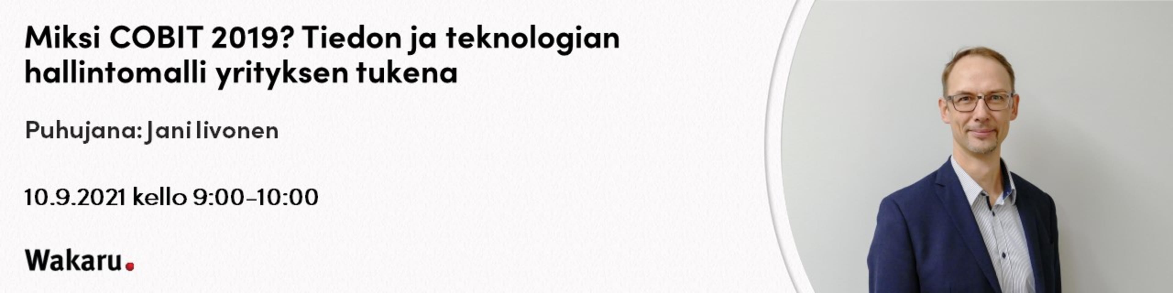 Wakaru Oy:n pitkäaikainen palvelujohtamisen valmentaja Jani Iivonen esittelee COBIT® 2019 Foundationin hyödyt yrityksen hallintomallien tukeksi.