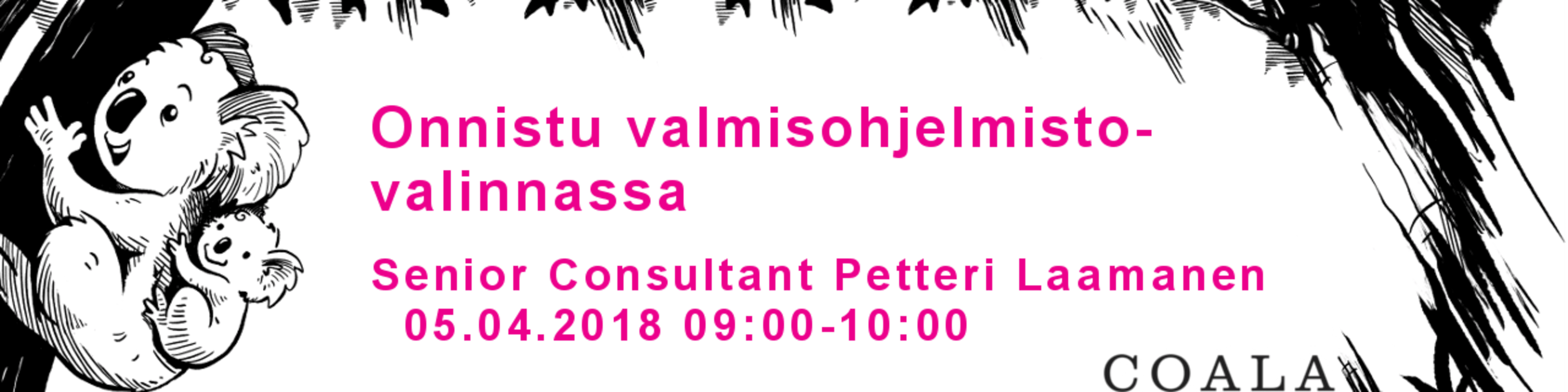 9.00-9.45 Onnistu valmisohjelmistovalinnassa Puhuja: Petteri Laamanen, Senior Consultant (Coala)