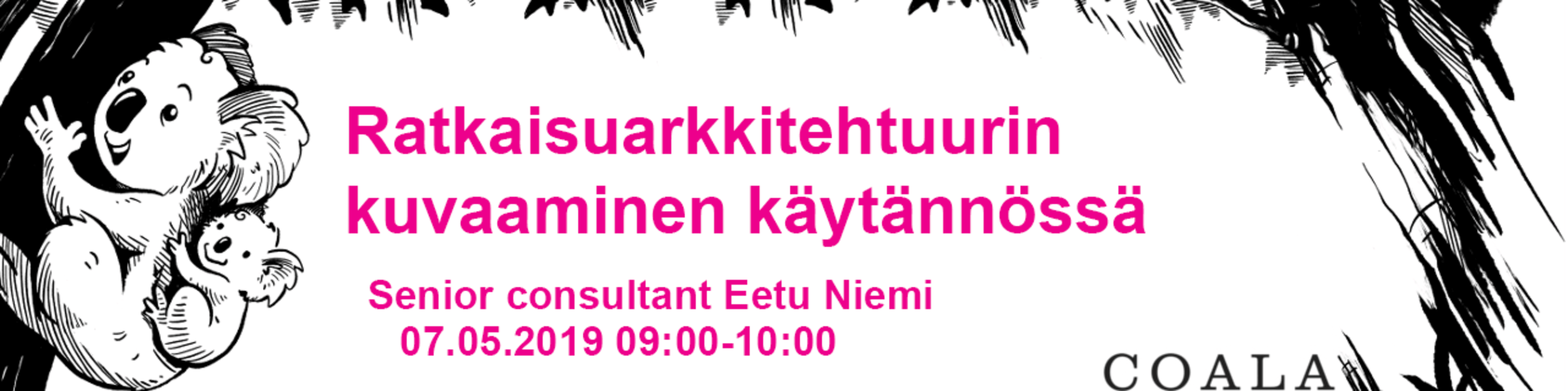9.00-9.45 Ratkaisuarkkitehtuurin kuvaaminen käytännössä. Puhuja: Eetu Niemi, FT, Senior Consultant (Coala)