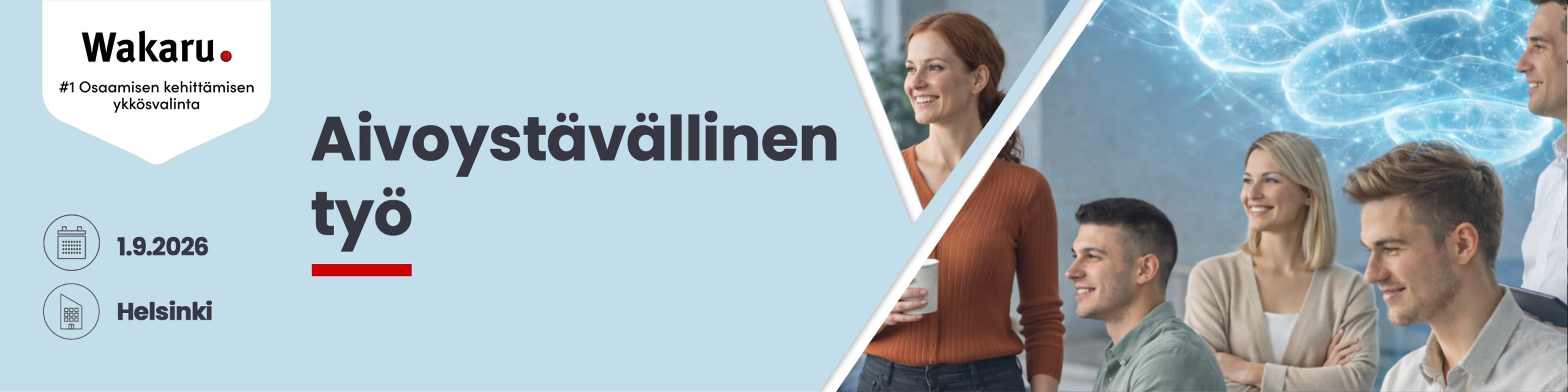 Miten vähennät kuormitusta ja vahvistat muutoskyvykkyyttä esihenkilötyössä? Aivoystävällinen työ on esihenkilöille suunnattu tapahtuma, jossa tarkastellaan työn kuormitusta, hybridityön vaikutuksia ja johtamisen arjen valintoja aivotutkimuksen näkökulmasta. Päivän aikana siirretään katse yksilön jaksamisesta työn rakenteisiin ja rakennetaan ymmärrystä siitä, miten esihenkilö voi vaikuttaa suoraan tiimin kuormitukseen, sujuvuuteen ja tuloksellisuuteen.