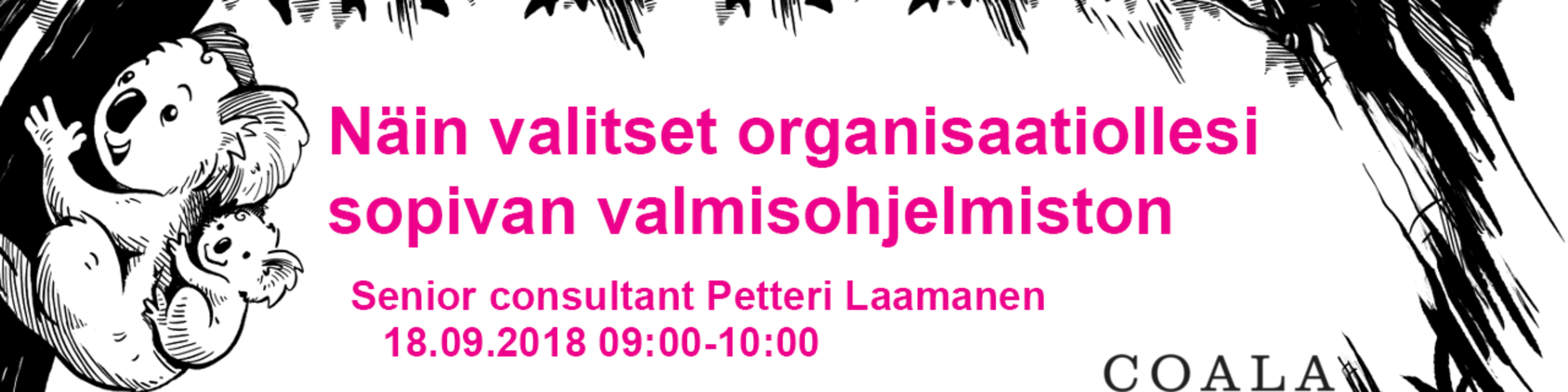 9.00-9.45 Näin valitset organisaatiollesi sopivan valmisohjelmiston Puhuja: Petteri Laamanen, Senior Consultant (Coala)
