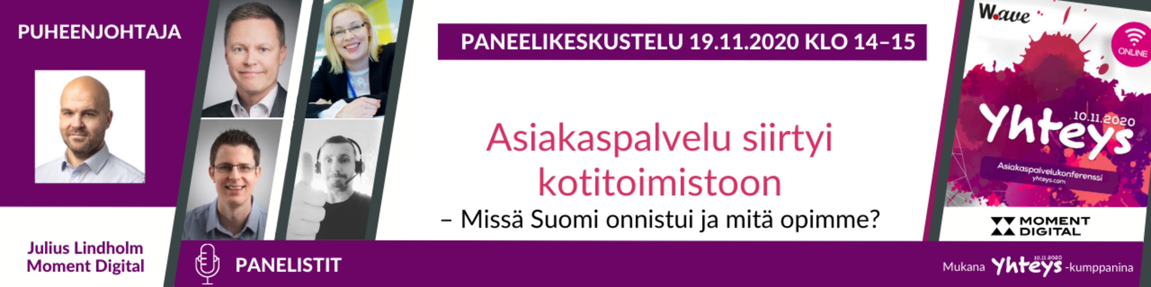 Asiakaspalvelun siirtymistä kotityöhön ruoditaan paneelikeskusteluna ja aihetta käsitellään niin johtamisen, työkyvyn, teknologian kuin työntekijän arjen näkökulmasta.